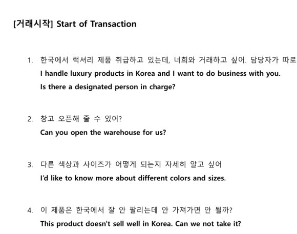 1. 현장에서 거래를 시작하기 위한 영어 표현들도 봐 두고